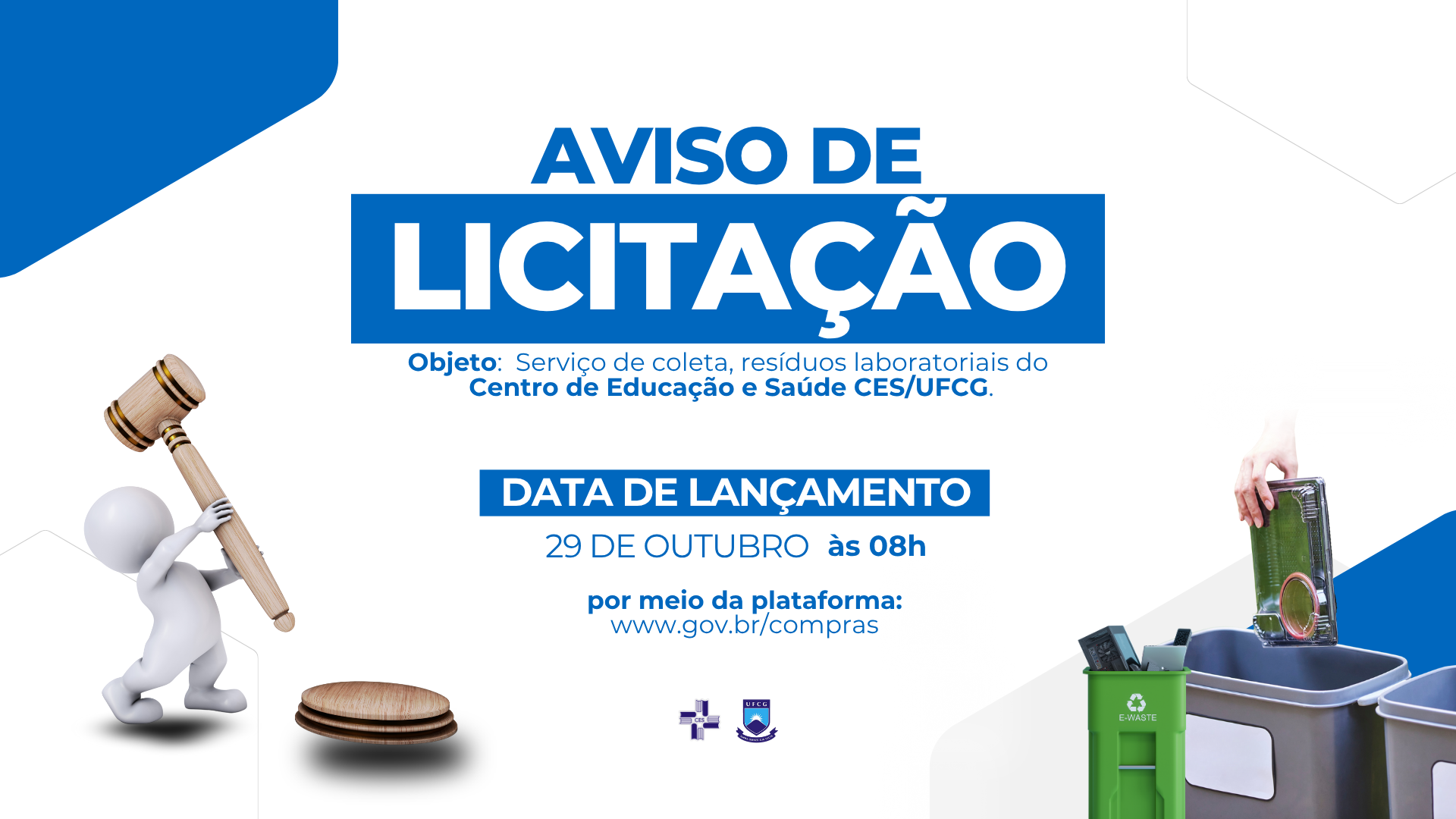 AVISO DE LICITAÇÃO - Objeto é o serviço de coleta, resíduos laboratoriais.